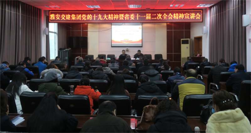 1月5日下午,市交建集團(tuán)舉行專題宣講會(huì),集中學(xué)習(xí)黨的十九大暨省委十一屆二次全會(huì)精神。會(huì)議邀請(qǐng)雅安市委黨校副校長(zhǎng)楊國(guó)先同志作專題輔導(dǎo),集團(tuán)公司黨委書記、董事長(zhǎng)漆家華主持輔導(dǎo)會(huì)并講話,交建集團(tuán)全體黨員、經(jīng)營(yíng)班子成員、中層干部參加學(xué)習(xí)。