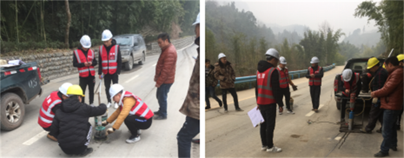 1月25日,寶興縣公路養(yǎng)護(hù)段組織第三方試驗(yàn)檢測機(jī)構(gòu)對路橋公司承建的“羅家村一、四、七組通組公路改(擴(kuò))建工程(K0+000~K0+800段)路面鋪筑及沿線邊溝、 交安工程”進(jìn)行交工驗(yàn)收外業(yè)檢測。寶興縣發(fā)改局、紀(jì)檢組以及參建監(jiān)理、設(shè)計(jì)、施工單位代表一同前往該項(xiàng)目現(xiàn)場進(jìn)行交工驗(yàn)收。