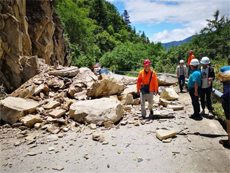 6月22日,因受突降暴雨影響,國道351線磽磧至夾金山路面改造工程1標段右轉2500米及K3127+850等多處發(fā)生大面積邊坡垮塌,垮塌方量約9200余方,沿線路面出現(xiàn)大量落石,造成交通阻斷。隨著降雨天氣的持續(xù),災情還有繼續(xù)擴大的趨勢。為了確保國道351線的暢通,該公司在接到預警信息后及時組織人員和機械設備全力以赴進行搶險搶通工作,于當日下午3點排除險情,搶修完畢,保證了車輛行人的正常通行和工程進度。