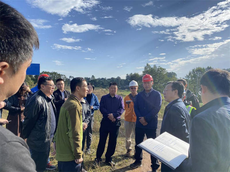 鄒瑾一行先后實地踏勘全線三個標段的施工現(xiàn)場,對照規(guī)劃圖紙了解施工進展情況。