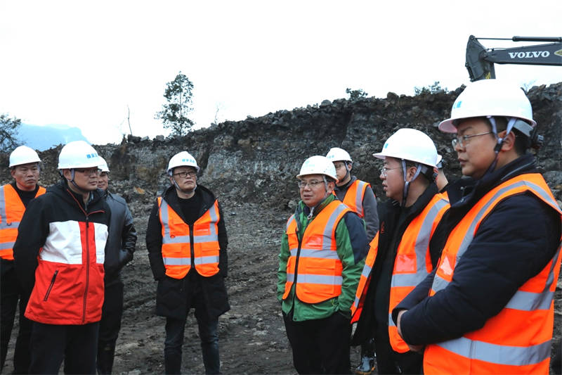 隨后,檢查組乘車前往天全魚泉鄉(xiāng)丹石礦山首采平臺。丹石公司負責(zé)人匯報,礦山存儲量可供開采十余年,目前已經(jīng)初步解決棄土矛盾,基本可以實現(xiàn)量產(chǎn)。聽完現(xiàn)場匯報,大家切實感受到礦山開采工作的艱辛,又為集團豐富的“家底”而信心倍增。