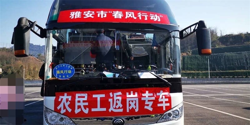 一切準備就緒后,四輛白色專車載著返崗農(nóng)民工從晏場鎮(zhèn)出發(fā)至雅安汽車東站換乘車輛,相關(guān)工作人員反復叮囑車上人員隔排就座,注意防護和安全。