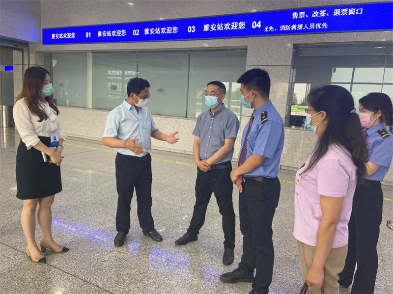 6月8日下午,市政府副秘書長陳武到雅安火車站檢查指導(dǎo)常態(tài)化疫情防控工作。市交通運輸局副局長龍興、市級相關(guān)部門及運通公司負責人陪同檢查。