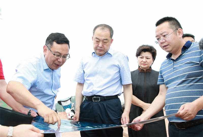 在雅安無水港鳳鳴物流園項目場平施工現(xiàn)場,蘭開馳聽取了項目業(yè)主交建集團黨委書記、董事長漆家華的工作匯報,詳細(xì)了解無水港物流項目規(guī)劃、建設(shè)進(jìn)展、業(yè)態(tài)布局等情況。