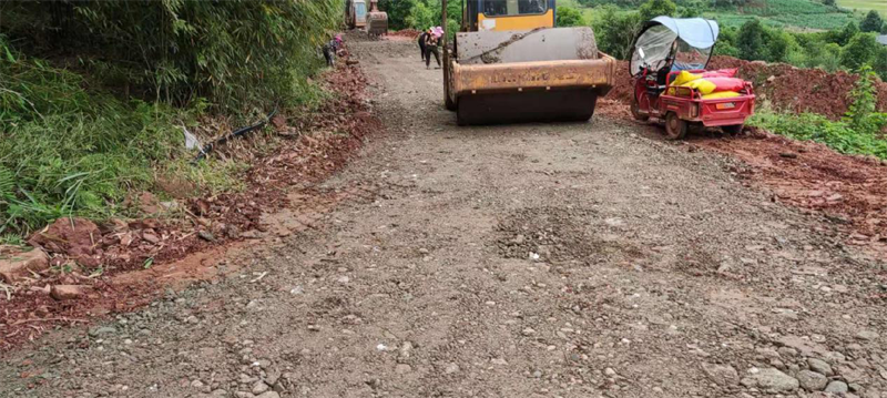 在路橋公司承接的“世界銀行貸款蘆山地震災(zāi)后恢復(fù)重建天全縣始陽(yáng)至新華農(nóng)村公路”項(xiàng)目天全縣新華鄉(xiāng)柏樹村至永安村段,其村道路面結(jié)構(gòu)層差,路基窄,雨水多,晴通雨阻,對(duì)本地農(nóng)產(chǎn)品外運(yùn)造成很大困擾,嚴(yán)重影響了民眾的生產(chǎn)生活。為積極響應(yīng)市委市政府加快雅安市“四好農(nóng)村路”的部署安排,解決當(dāng)?shù)卮迕癯鲂须y、本土農(nóng)產(chǎn)品外銷滯后等問題,路橋公司天全項(xiàng)目部主動(dòng)作為,在推進(jìn)項(xiàng)目部主體建設(shè)的同時(shí),堅(jiān)持以問題為導(dǎo)向,采用“始新路”施工現(xiàn)場(chǎng)自拌水穩(wěn)料,為村民鋪設(shè)了一段長(zhǎng)臨時(shí)水穩(wěn)路面,方便廣大村民順利出行,促進(jìn)當(dāng)?shù)剞r(nóng)產(chǎn)品物資交流。