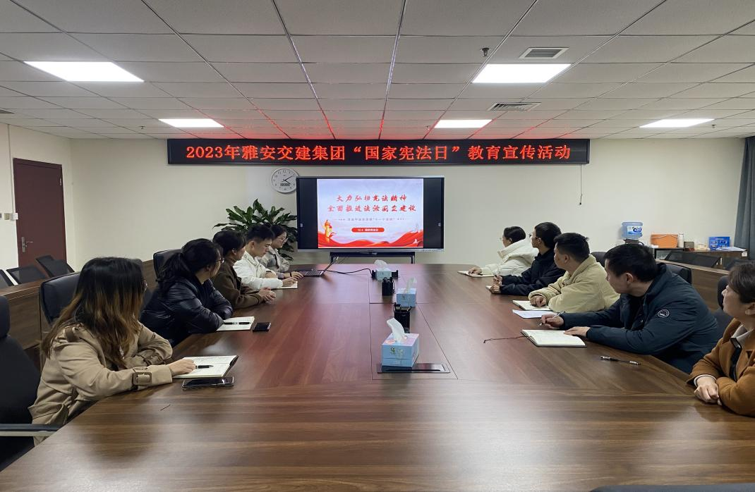 今天是我國第十個(gè)國家憲法日。為深入學(xué)習(xí)貫徹黨的二十大精神、習(xí)近平法治思想、習(xí)近平總書記關(guān)于憲法的重要論述,12月4日,雅安交建集團(tuán)組織員工開展以“大力弘揚(yáng)憲法精神,全面推進(jìn)法治國企建設(shè)”為主題的“國家憲法日”宣傳教育活動(dòng),推動(dòng)“憲法宣傳周”法治教育宣傳活動(dòng)落地落實(shí)。