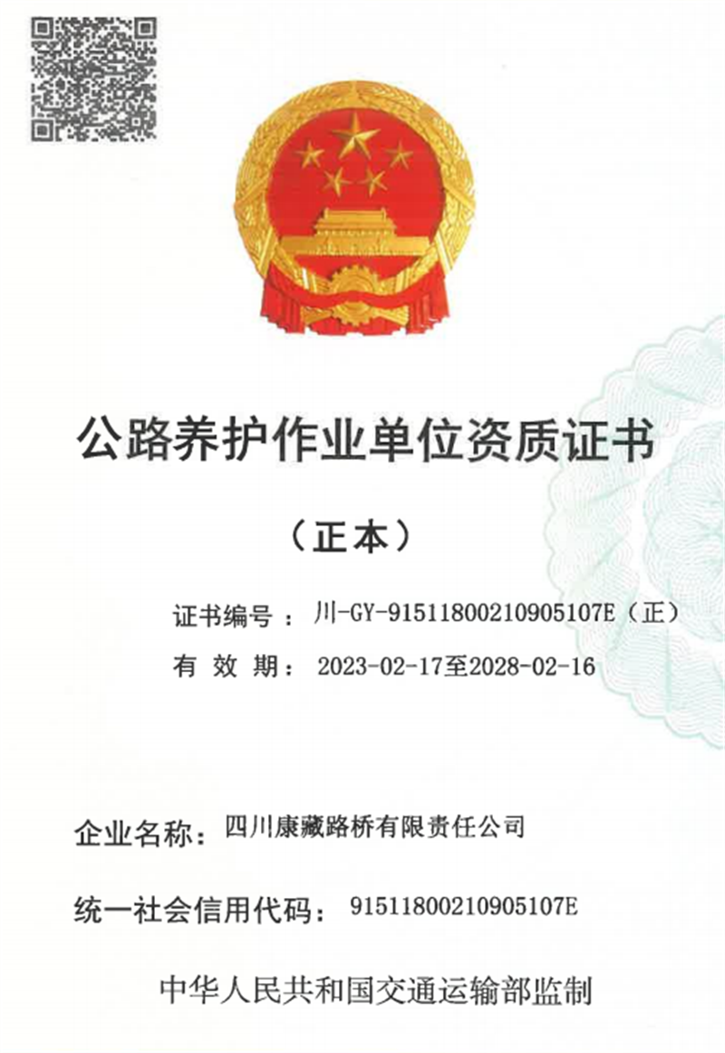 日前,四川康藏路橋有限責(zé)任公司成功通過四川省交通運輸廳資質(zhì)申報評審,順利取得路基路面養(yǎng)護(hù)乙級資質(zhì)證書,成為目前雅安唯一獲得此養(yǎng)護(hù)資質(zhì)的作業(yè)單位。