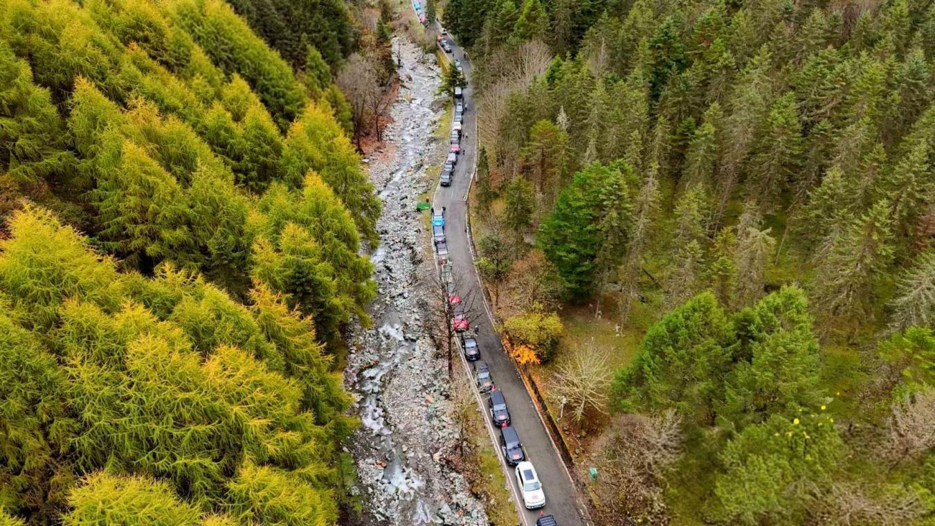 在穿越巡游階段,150輛越野車在大本營集結(jié),組成一條震撼的長龍,開啟穿越巡游活動,前往雅安市寶興縣參加楓葉節(jié)開幕式,沉浸式體驗(yàn)神木壘景區(qū)、到鄧池溝與大熊貓相約、走進(jìn)藏寨體驗(yàn)加絨藏族民俗文化,全方位感受雅安的好山好水好風(fēng)光。