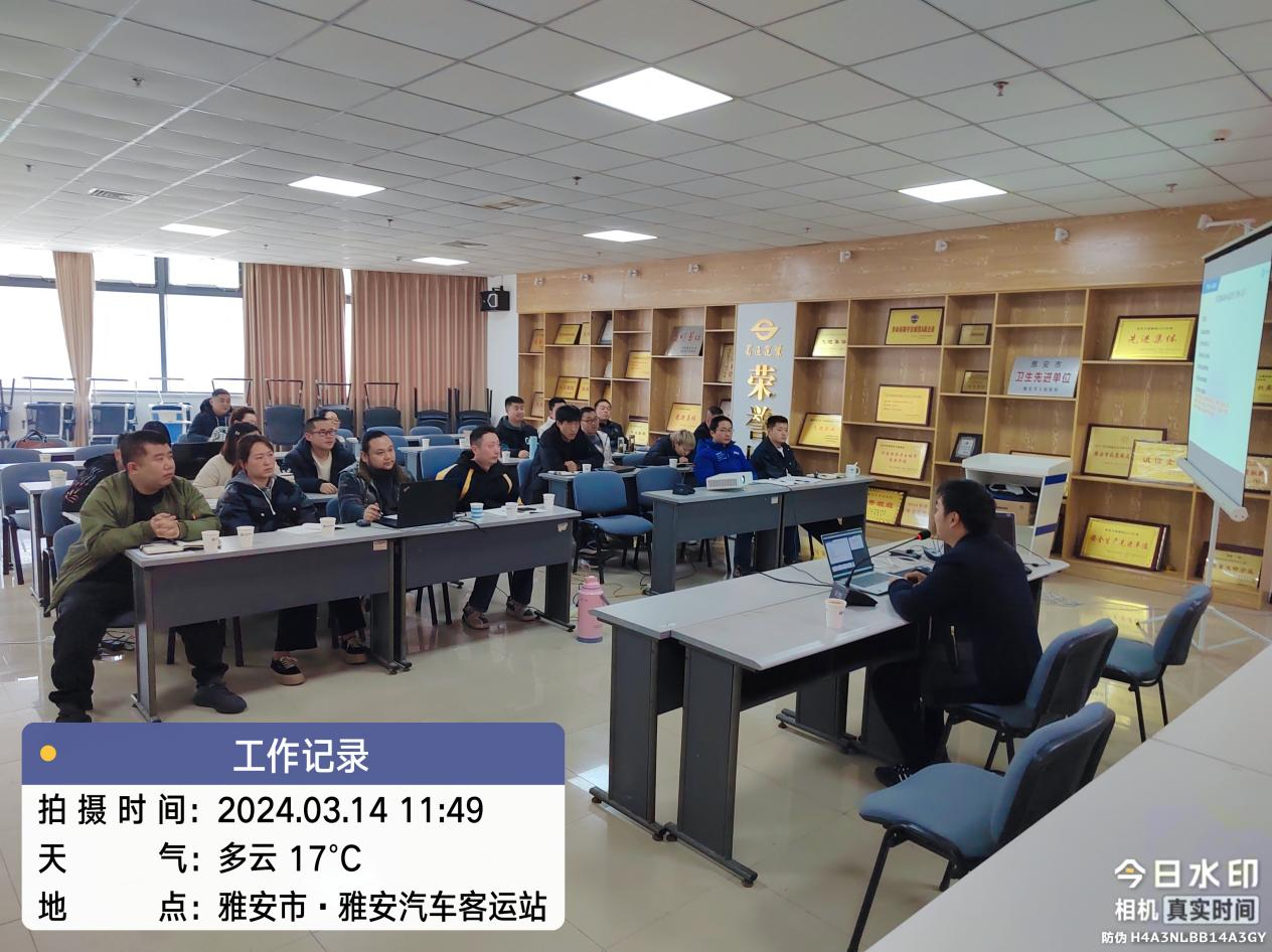 為進一步規(guī)范營運車輛動態(tài)監(jiān)控管理,提高動態(tài)監(jiān)控人員安全責任意識和綜合監(jiān)管能力,結(jié)合雅安市安全生產(chǎn)治本攻堅三年行動要求,2024年3月14日,蜀通公司特邀成都網(wǎng)闊公司技術(shù)工程師,對我司18名專職車輛動態(tài)監(jiān)控管理人員進行業(yè)務(wù)培訓。