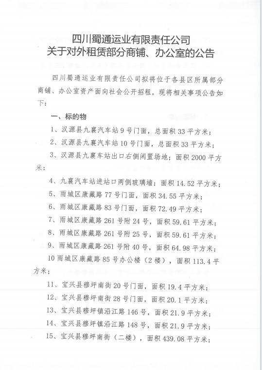 ËÄ´¨Êñͨß\(y¨´n)˜I(y¨¨)ÓÐÏÞØŸ(z¨¦)Èι«Ë¾êP(gu¨¡n)ÓÚŒ¦Íâ×âÙU²¿·ÖéTÃæ¡¢Þk¹«ÊÒÙY®a(ch¨£n)µÄ¹«¸æ¸½¼þ