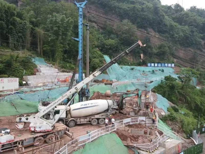 “咚咚咚……”在雨城區(qū)多營鎮(zhèn)五營村熊家山二號(hào)隧道出口端空地上,旋挖鉆機(jī)開足馬力,朝著地層深處掘進(jìn),不斷發(fā)出富有節(jié)奏的聲響。“每個(gè)樁基有二十多米深。”國道318線名山區(qū)黑竹(成都界)至雨城區(qū)多營段改建工程項(xiàng)目副經(jīng)理林洲,每天都要到各施工點(diǎn)位查看進(jìn)度。他說,熊家山二號(hào)隧道附近山體為順層帶,易產(chǎn)生滑坡,進(jìn)洞施工前需要先在洞外打抗滑樁,以確保施工安全,目前還在開展剩下3根抗滑樁的施工。