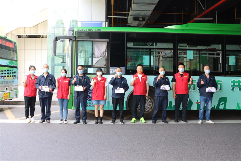 最后,青年團員們帶著親手制作的40份防疫香囊、藿香正氣液、口罩等防疫消暑慰問品,來到市區(qū)內(nèi)的各個公交車站點開展了志愿者服務(wù)活動。團員志愿者們親手為公交駕駛員師傅送上了慰問物質(zhì),關(guān)切詢問他們的作息時間、身體狀況等,并感謝他們?yōu)槌鞘邪l(fā)展和群眾出行付出的辛苦勞動,同時叮囑大家在高溫季節(jié)一定要注意勞逸結(jié)合,做好防疫和防暑措施。