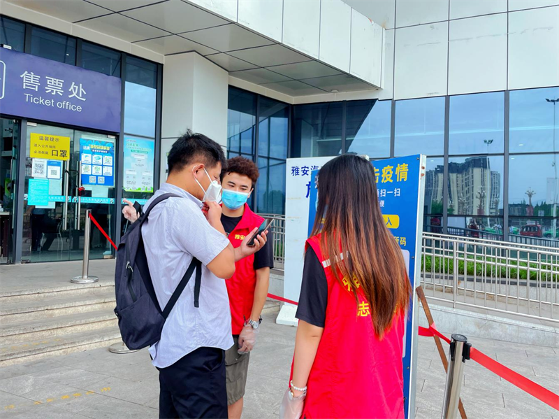 青年志愿者們嚴(yán)格遵守雅安市汽車客運(yùn)站站長(zhǎng)葛舉康為大家講解的疫情防控工作要求,積極投身志愿服務(wù),分別在雅安市火車站進(jìn)出站口、雅安市汽車客運(yùn)站進(jìn)站口、售票大廳、候車廳等點(diǎn)位駐守,勸導(dǎo)旅客戴好口罩、查驗(yàn)場(chǎng)所碼、行程碼及核酸報(bào)告,并向乘客宣傳疫情防控知識(shí),時(shí)刻提醒旅客保持安全距離,認(rèn)真維護(hù)現(xiàn)場(chǎng)秩序。