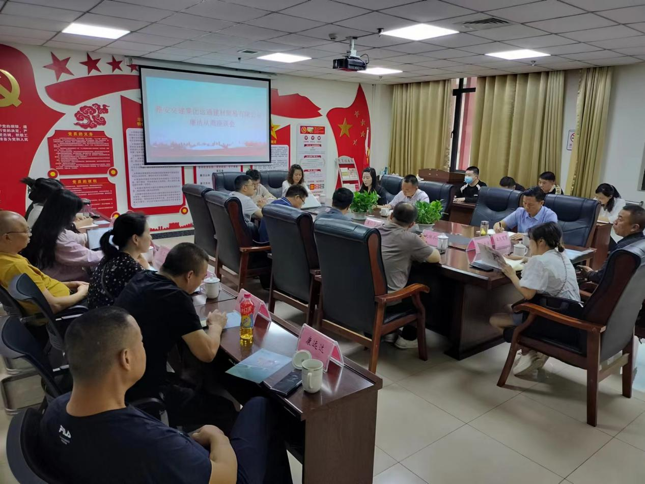為深刻認識廉潔文化建設的重大意義,不斷筑牢公司黨員干部職工拒腐防變的思想堤壩,為公司高質量發(fā)展構建風清氣正的政治生態(tài)。6月6日下午15:30,交建集團建材公司組織召開廉潔從商座談會,進一步壓緊壓實雙方的廉潔責任,構建“親不逾矩、清不遠疏”的合作關系。公司黨支部副書記、總經(jīng)理李巧頔主持會議,黨支部書記、董事長李波、副總經(jīng)理程新忠、各部門負責人以及15家合作商相關負責人參加了本次會議。