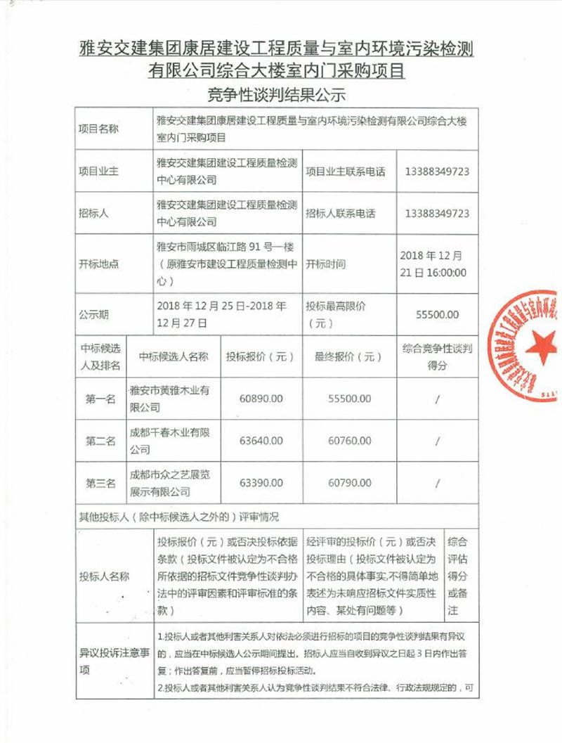 雅安市交通建設(集團)有限責任公司大型戶外廣告企業(yè)入庫比選結果
