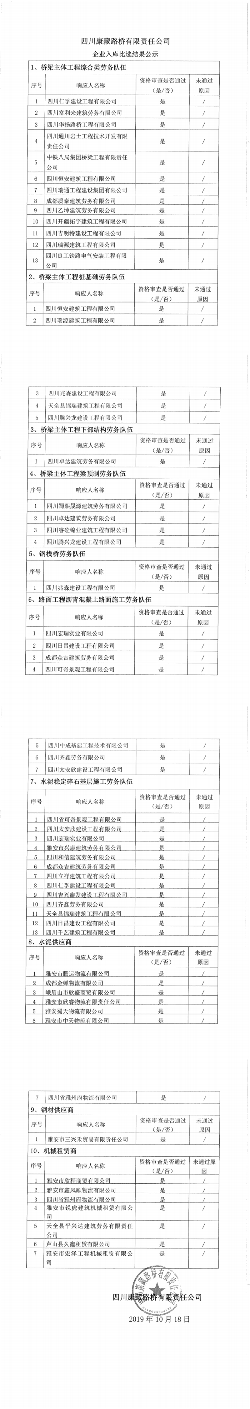 四川康藏路橋有限責(zé)任公司企業(yè)入庫(kù)比選結(jié)果公示
