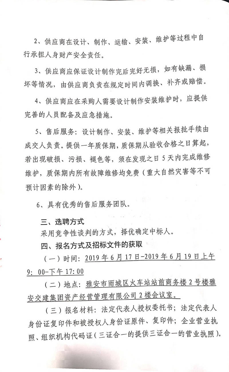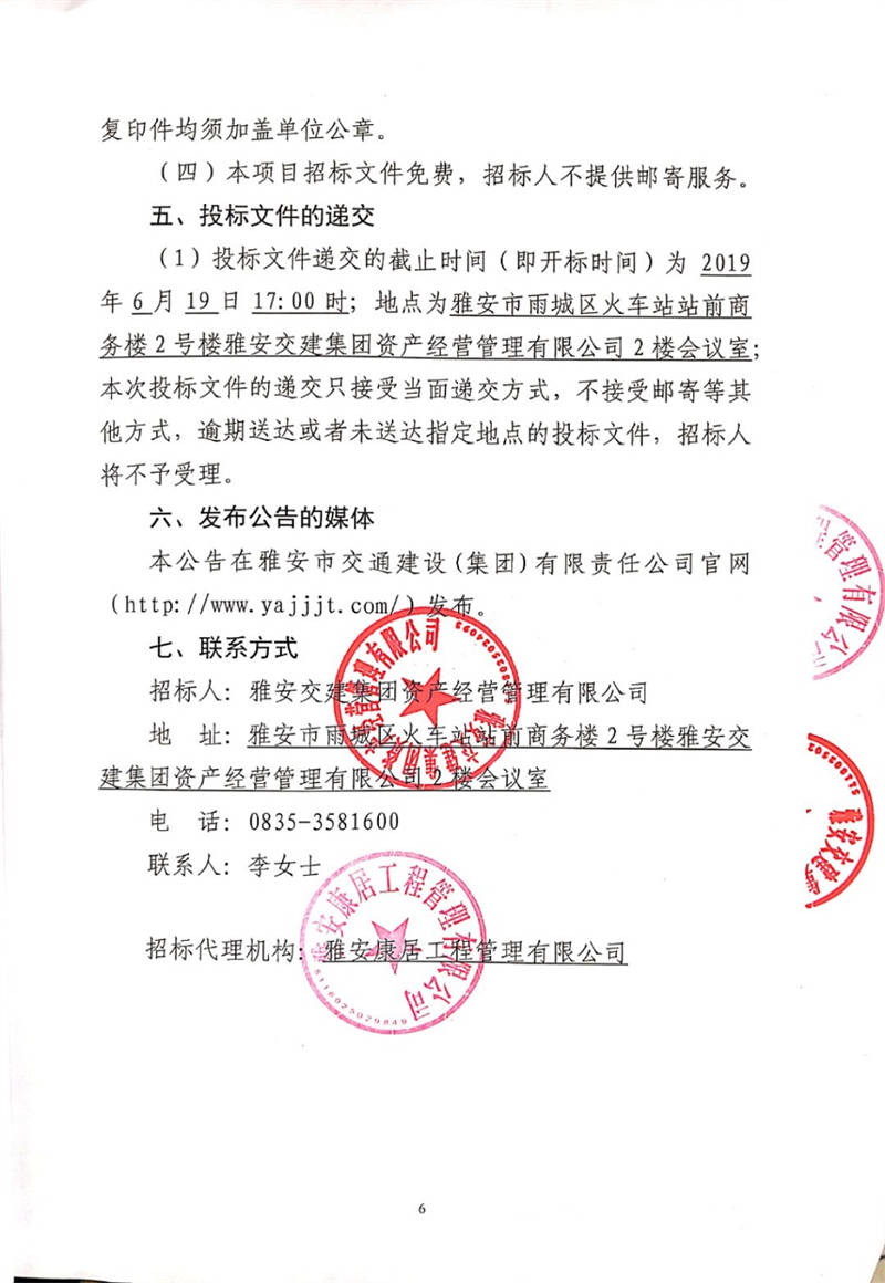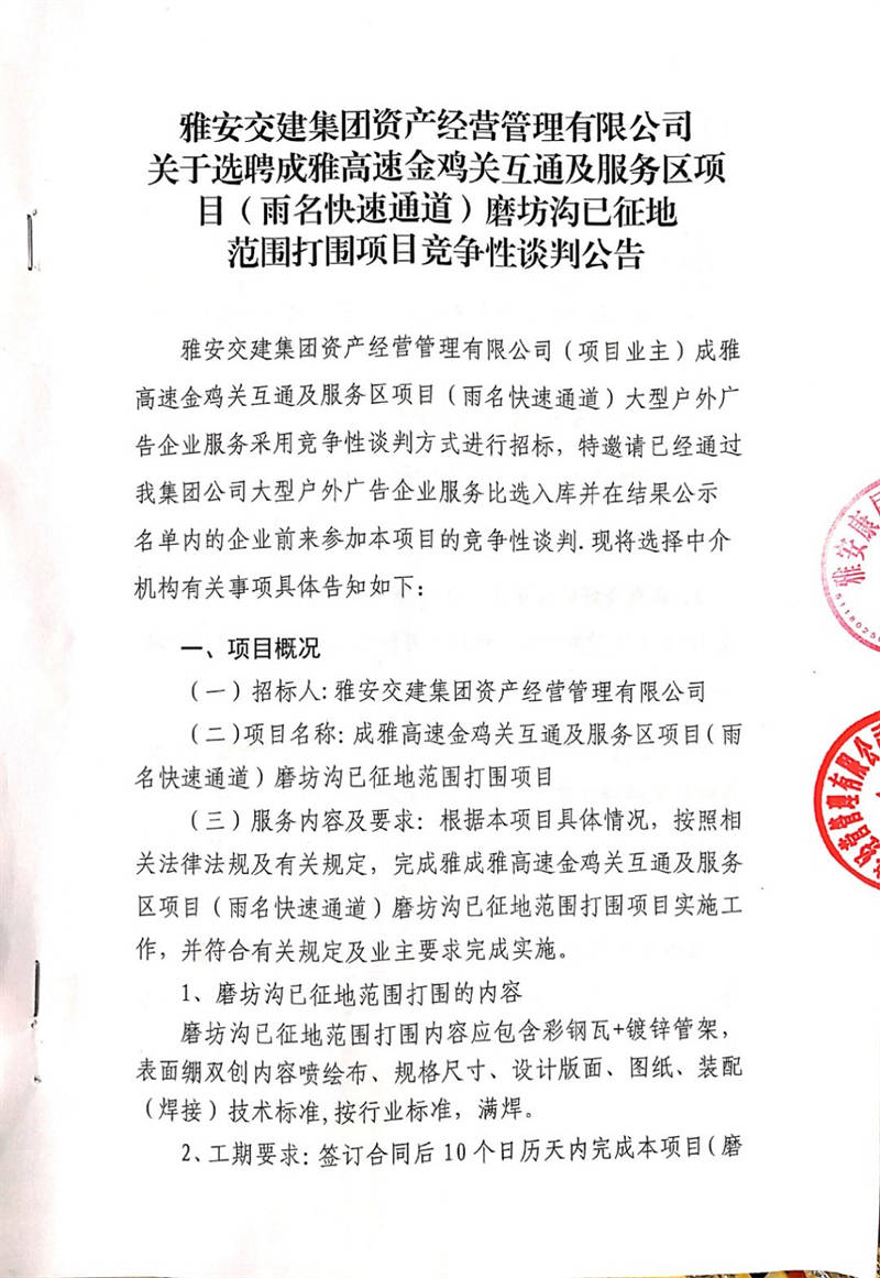 雅安交建集團資產經營管理有限公司關于選聘成雅高速金雞關互通及服務區(qū)項目(雨名快速通道)磨坊溝已征地范圍打圍項目競爭性談判公告