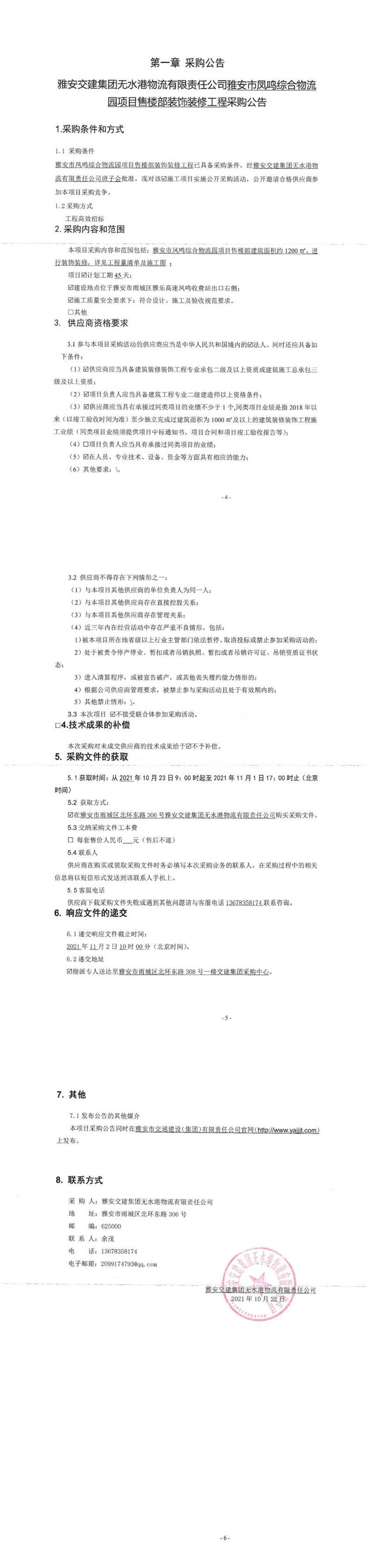 雅安交建集團(tuán)無(wú)水港物流有限責(zé)任公司雅安市鳳鳴綜合物流園項(xiàng)目售樓部裝飾裝修工程(第二次)采購(gòu)公告