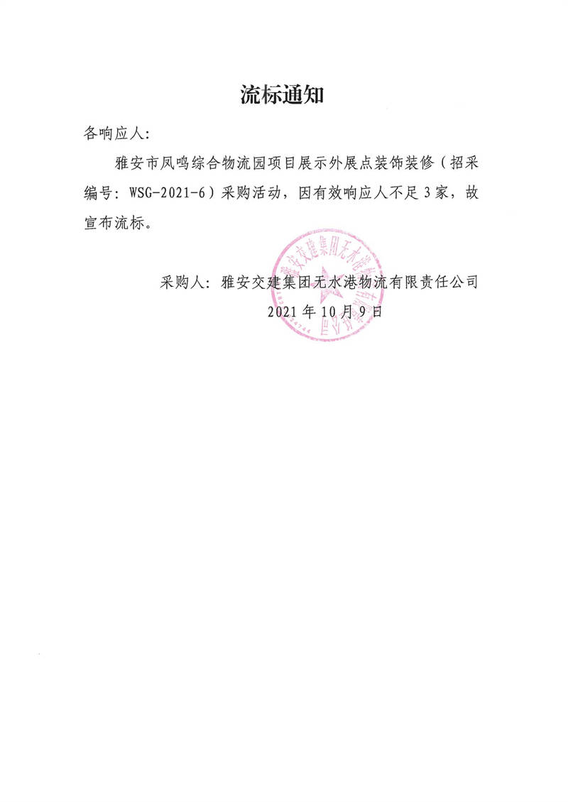 雅安交建集團(tuán)無水港物流有限責(zé)任公司雅安市鳳鳴綜合物流園項目展示外展點裝飾裝修流標(biāo)通知