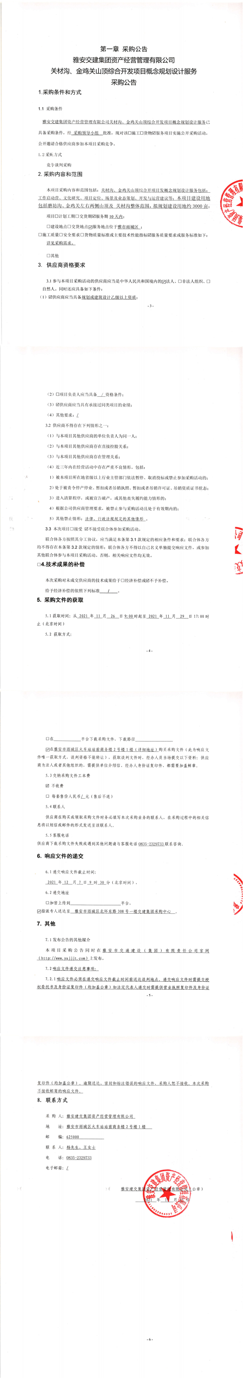 雅安交建集團(tuán)資產(chǎn)經(jīng)營(yíng)管理有限公司關(guān)材溝、金雞關(guān)山頂綜合開(kāi)發(fā)項(xiàng)目概念規(guī)劃設(shè)計(jì)服務(wù)采購(gòu)公告