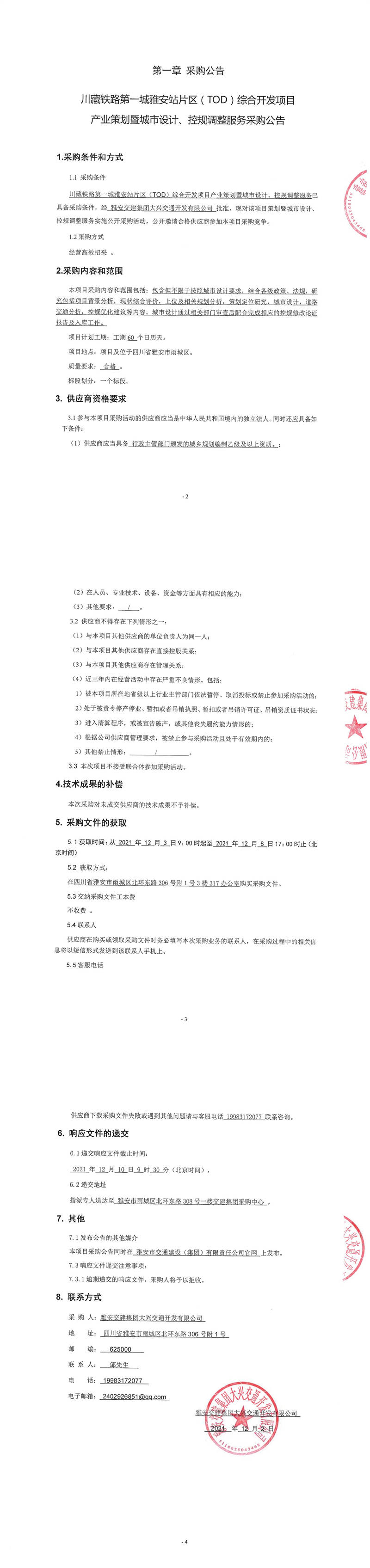 雅安交建集團(tuán)大興交通開發(fā)有限公司川藏鐵路第一城雅安站片區(qū)(TOD)綜合開發(fā)項(xiàng)目產(chǎn)業(yè)策劃暨城市設(shè)計、控規(guī)調(diào)整服務(wù)采購公告