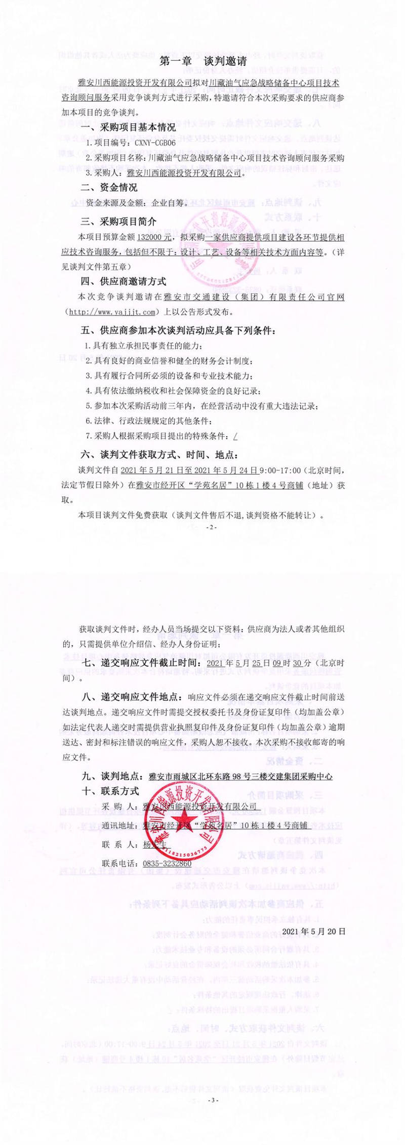 雅安川西能源投資開發(fā)有限公司川藏油氣應(yīng)急戰(zhàn)略儲備中心項目技術(shù)咨詢顧問服務(wù)采購競爭談判公告