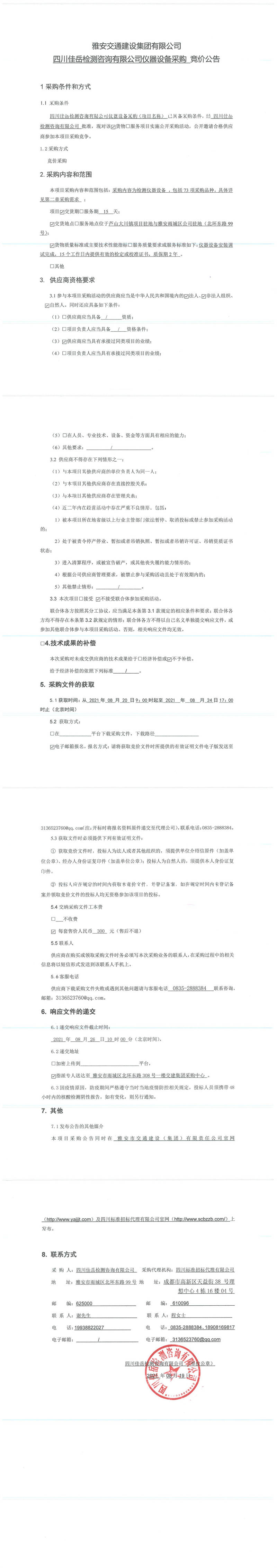 雅安交通建設(shè)集團(tuán)有限公司四川佳岳檢測咨詢有限公司儀器設(shè)備采購競價(jià)公告