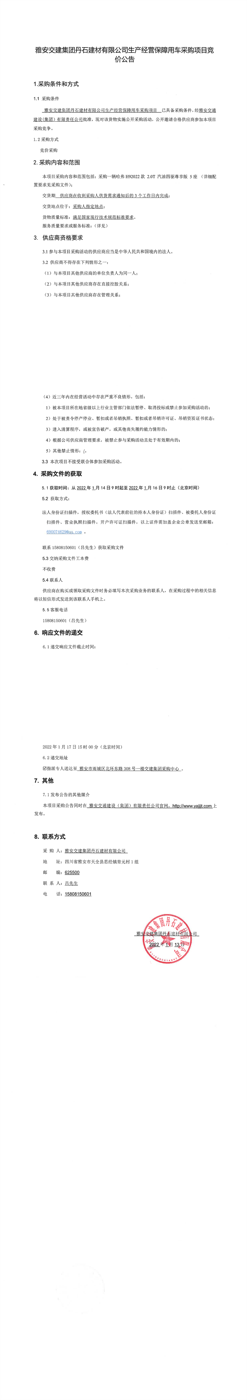 雅安交建集團(tuán)丹石建材有限公司生產(chǎn)經(jīng)營保障用車采購項(xiàng)目競價(jià)公告