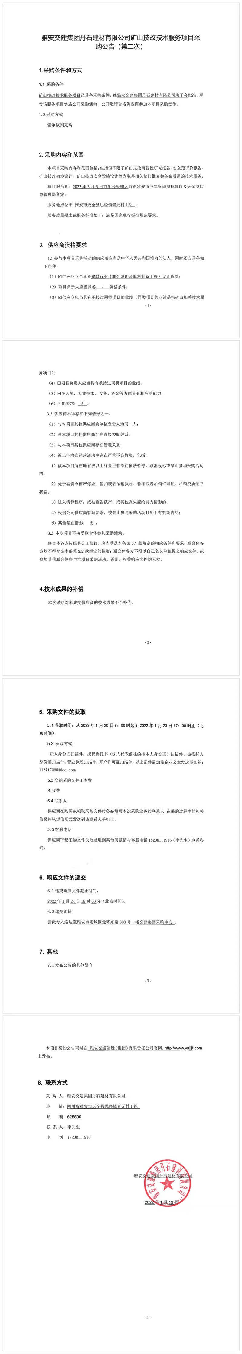 雅安交建集團丹石建材有限公司礦山技改技術服務項目采購公告(第二次)