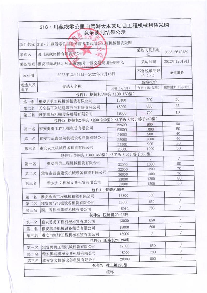四川康藏路橋有限責(zé)任公司318.川藏線零公里自駕游大本營項目工程機(jī)械租賃采購競爭談判結(jié)果公示