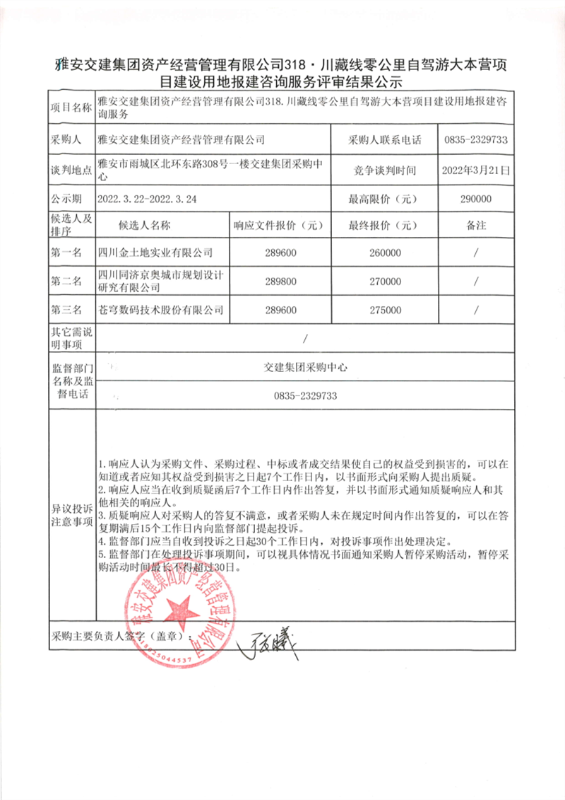 雅安交建集團(tuán)資產(chǎn)經(jīng)營(yíng)管理有限公司318川藏線(xiàn)零公里自駕游大本營(yíng)項(xiàng)目建設(shè)用地報(bào)建咨詢(xún)服務(wù)評(píng)審結(jié)果公示