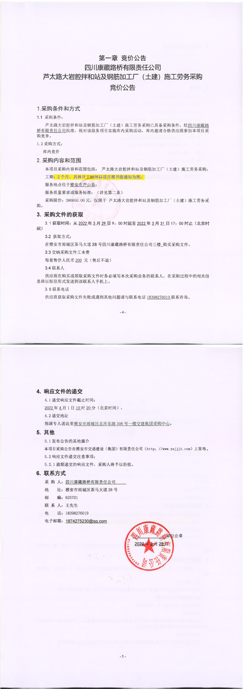 四川康藏路橋有限責(zé)任公司蘆太路大巖腔拌和站及鋼筋加工廠(土建)施工勞務(wù)采購競價公告