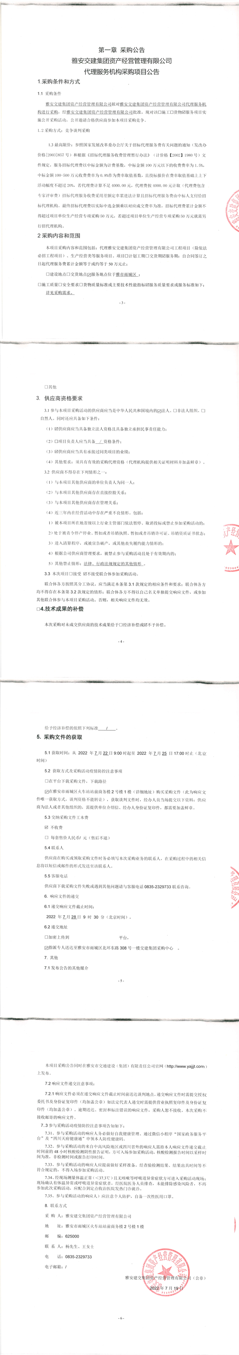 雅安交建集團資產(chǎn)經(jīng)營管理有限公司代理服務(wù)機構(gòu)采購項目公告