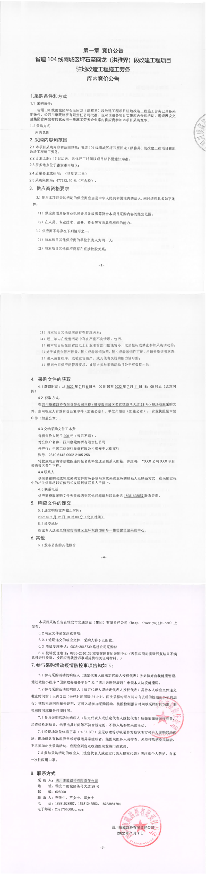四川康藏路橋有限責(zé)任公司省道104線(xiàn)雨城區(qū)坪石至回龍(洪雅界)段改建工程項(xiàng)目駐地改造工程施工勞務(wù)庫(kù)內(nèi)競(jìng)價(jià)公告