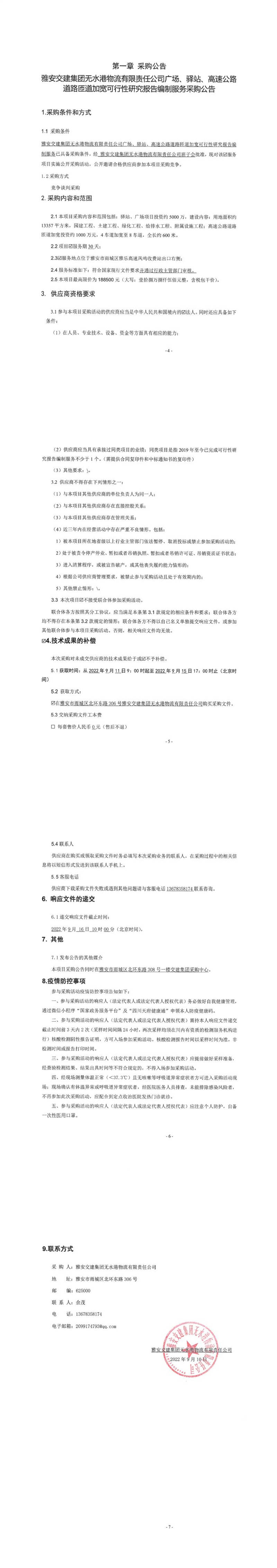 雅安交建集團無水港物流有限責任公司廣場、驛站、高速公路道路匝道加寬可行性研究報告編制服務采購公告