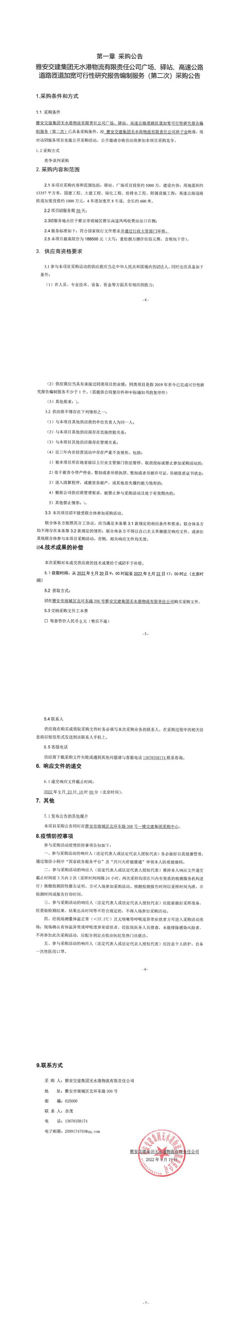 雅安交建集團(tuán)無水港物流有限責(zé)任公司廣場、驛站、高速公路道路匝道加寬可行性研究報(bào)告編制服務(wù)(第二次)采購公告