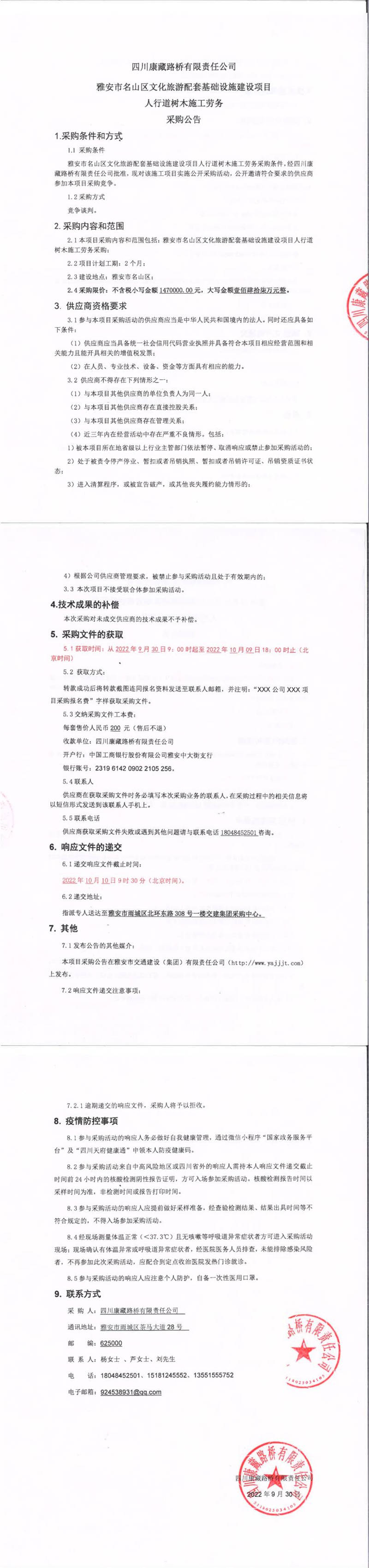 四川康藏路橋有限責任公司雅安市名山區(qū)文化旅游配套基礎(chǔ)設(shè)施建設(shè)項目人行道樹木施工勞務(wù)采購公告