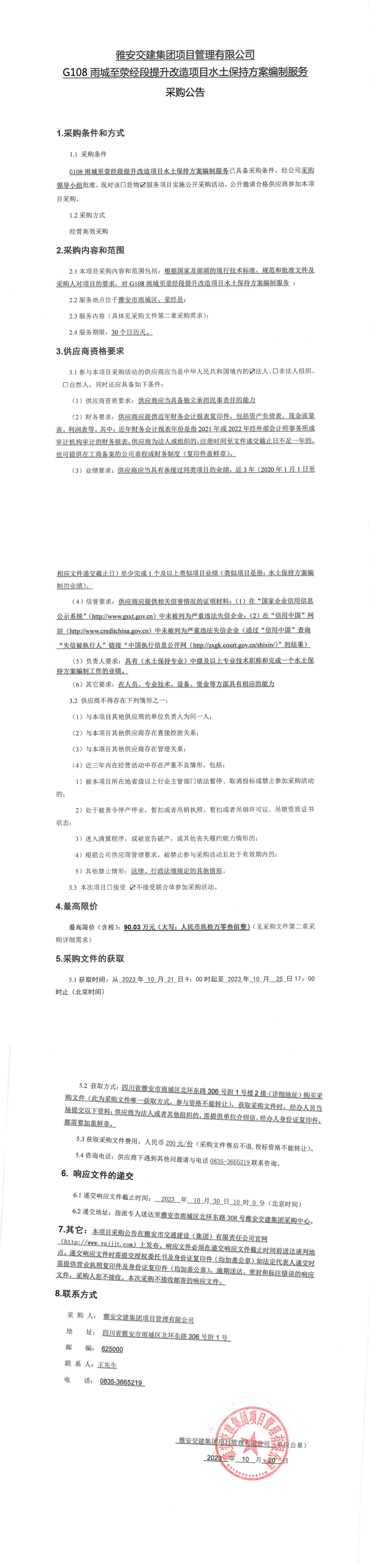 雅安交建集團(tuán)項(xiàng)目管理有限公司G108雨城至滎經(jīng)段提升改造項(xiàng)目水土保持方案編制服務(wù)采購(gòu)公告