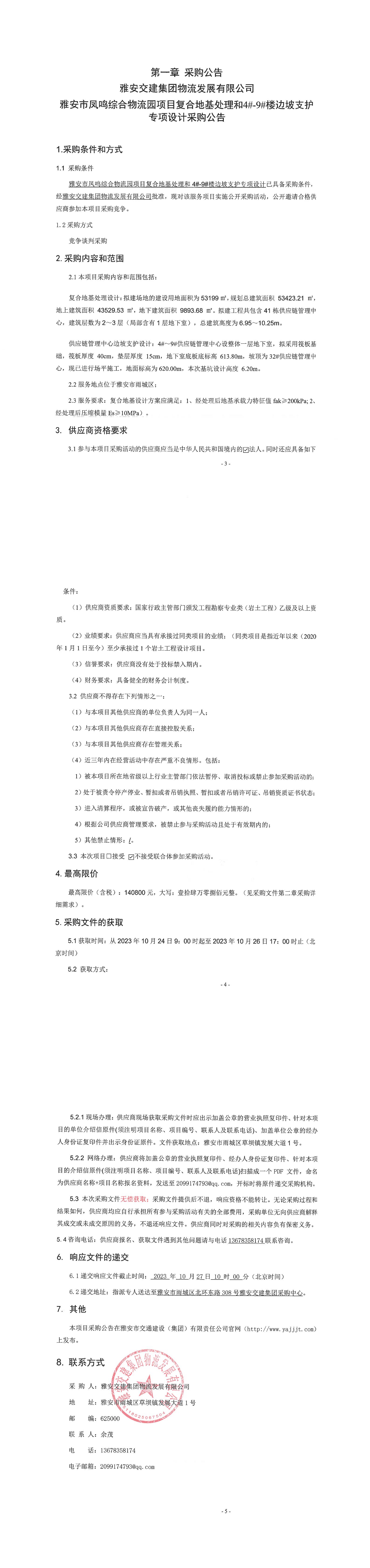 雅安交建集團物流發(fā)展有限公司雅安市鳳鳴綜合物流園項目復合地基處理和4#-9#樓邊坡支護專項設計采購公告