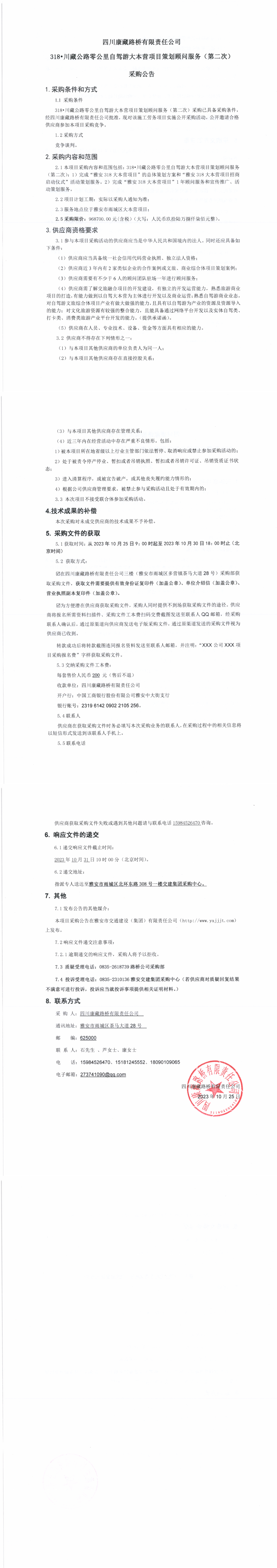 四川康藏路橋有限責任公司318•川藏公路零公里自駕游大本營項目策劃顧問服務(wù)(第二次)采購公告