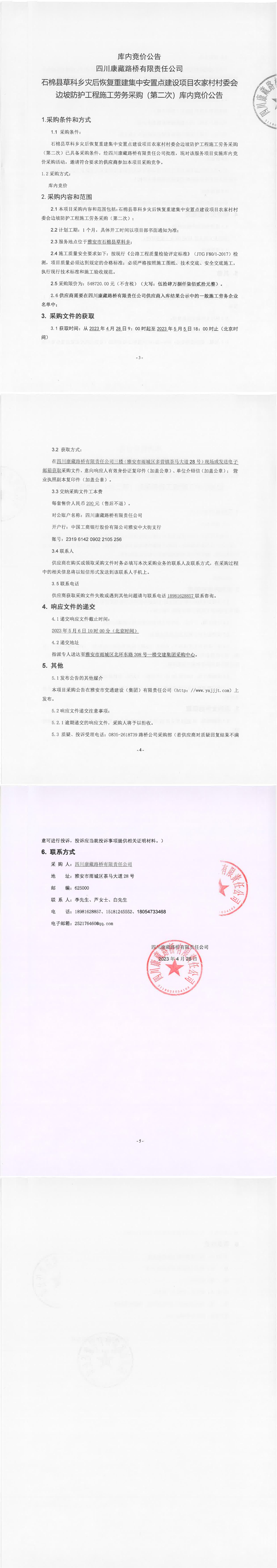 四川康藏路橋有限責(zé)任公司石棉草科鄉(xiāng)災(zāi)后恢復(fù)重建集中安置點建設(shè)項目農(nóng)家村村委會邊坡防護工程施工勞務(wù)采購(第二次)庫內(nèi)競價公告