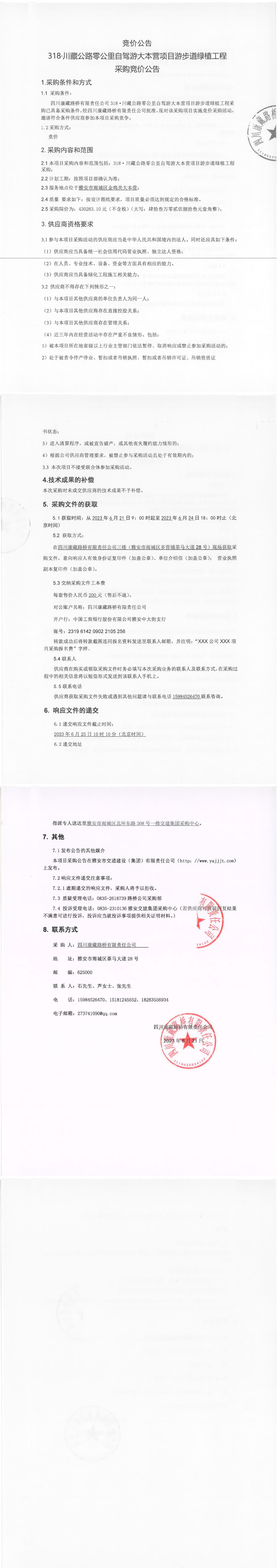 四川康藏路橋有限責(zé)任公司318·川藏公路零公里自駕游大本營項目游步道綠植工程采購競價公告