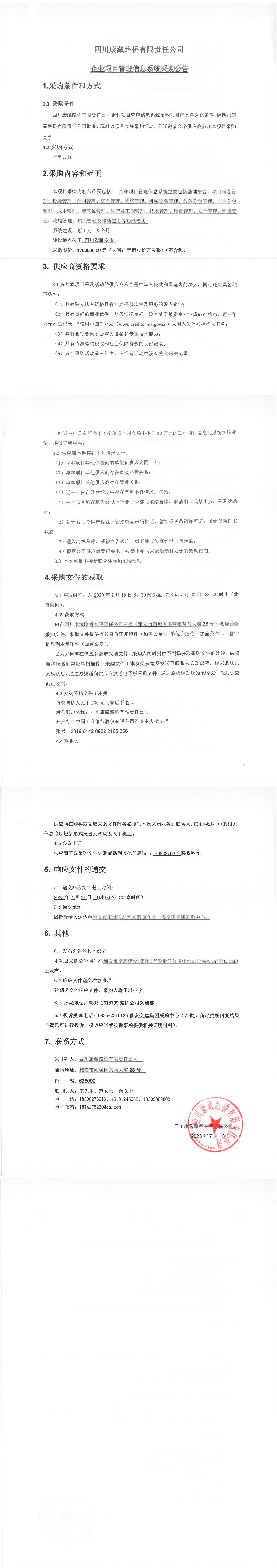 四川康藏路橋有限責(zé)任公司企業(yè)項(xiàng)目管理信息系統(tǒng)采購(gòu)公告
