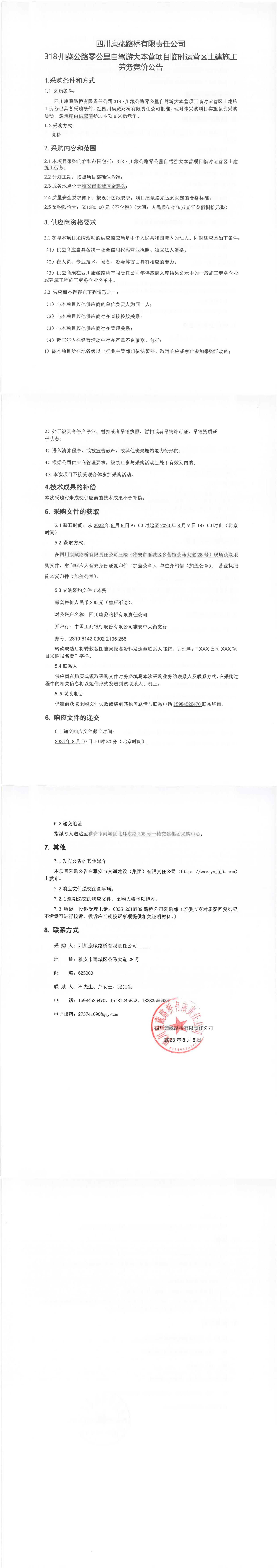 四川康藏路橋有限責任公司318·川藏公路零公里自駕游大本營項目臨時運營區(qū)土建施工勞務(wù)競價公告