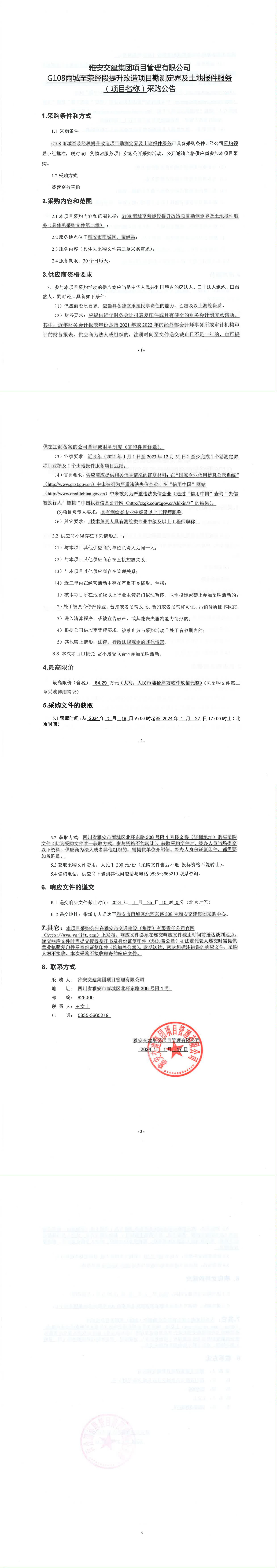 雅安交建集團(tuán)項目管理有限公司G108雨城至滎經(jīng)段提升改造項目勘測定界及土地報件服務(wù)(項目名稱)采購公告