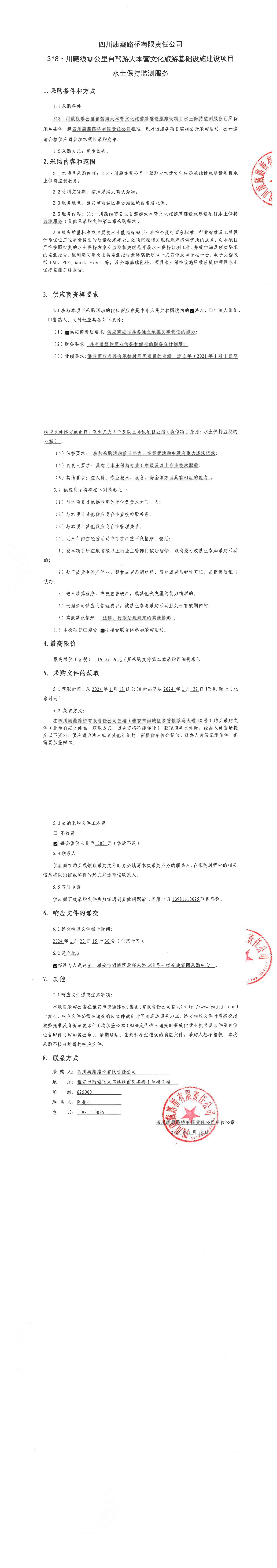 四川康藏路橋有限責(zé)任公司318·川藏線(xiàn)零公里自駕游大本營(yíng)文化旅游基礎(chǔ)設(shè)施建設(shè)項(xiàng)目水土保持監(jiān)測(cè)服務(wù)采購(gòu)公告