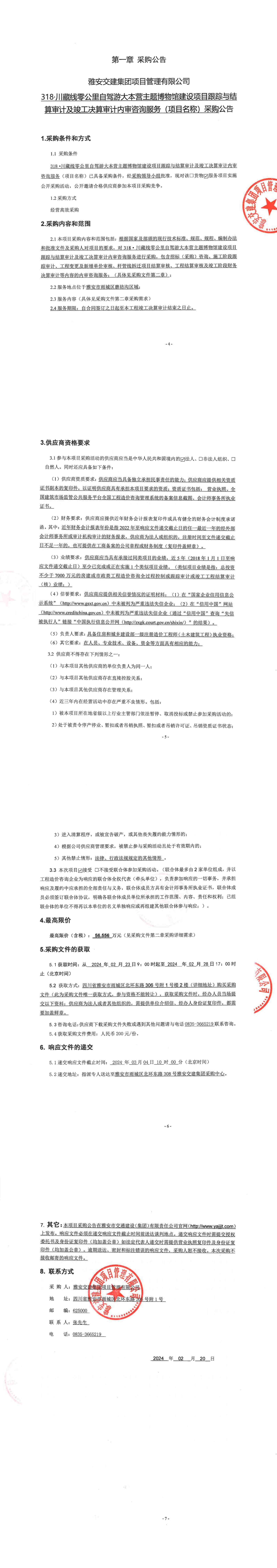 雅安交建集團(tuán)項目管理有限公司318·川藏線零公里自駕游大本營主題博物館建設(shè)項目跟蹤與結(jié)算審計及竣工決算審計內(nèi)審咨詢服務(wù)采購公告