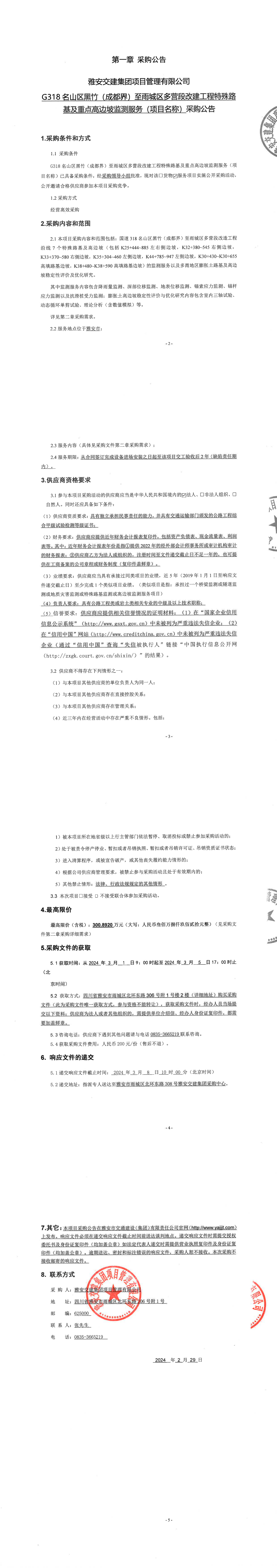 雅安交建集團(tuán)項(xiàng)目管理有限公司國道318名山區(qū)黑竹(成都界)至雨城區(qū)多營段改造工程的特殊及重點(diǎn)路基高邊坡監(jiān)測服務(wù)(項(xiàng)目名稱)采購公告