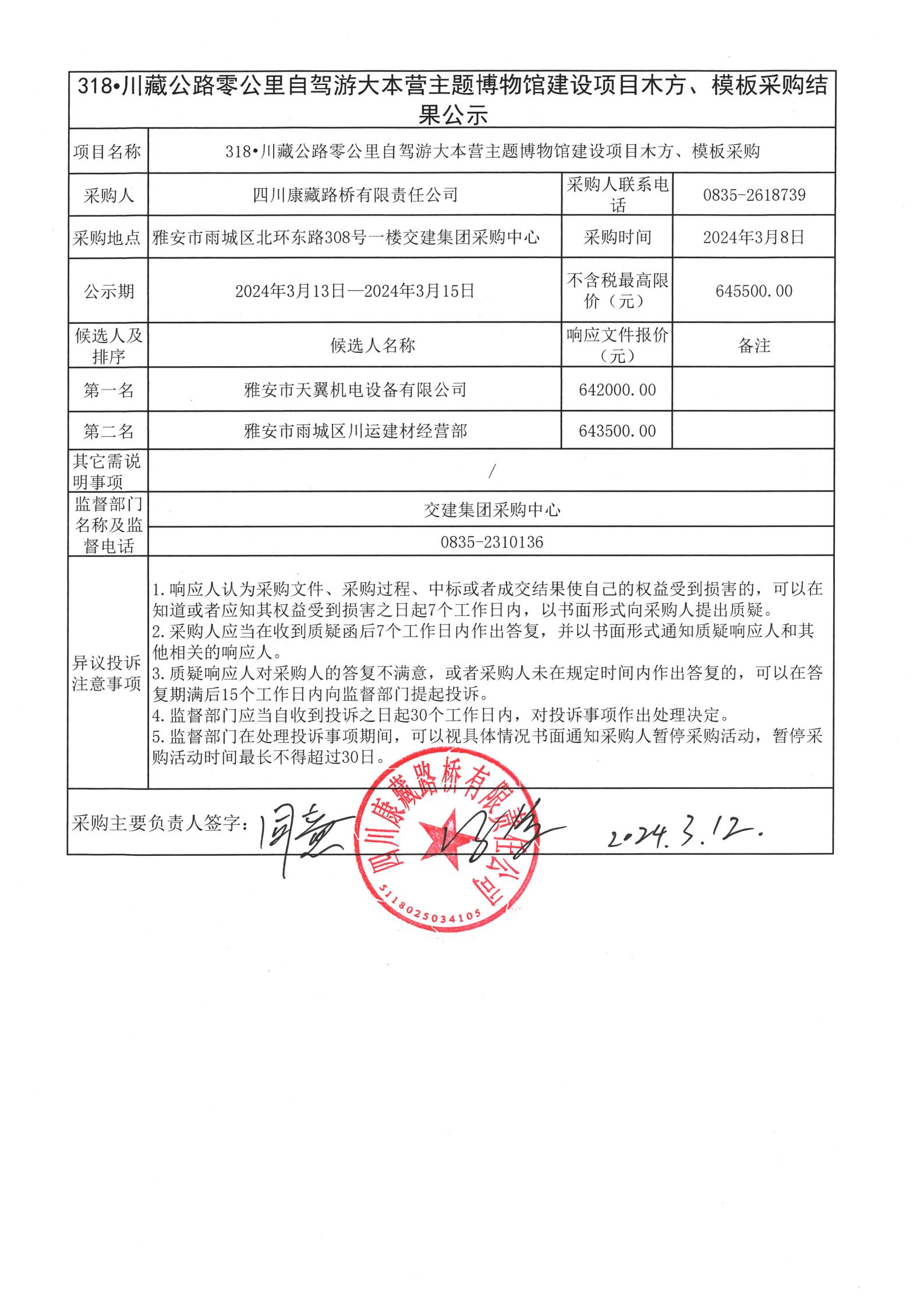 四川康藏路橋有限責任公司318•川藏公路零公里自駕游大本營主題博物館建設項目木方、模板采購結果公示