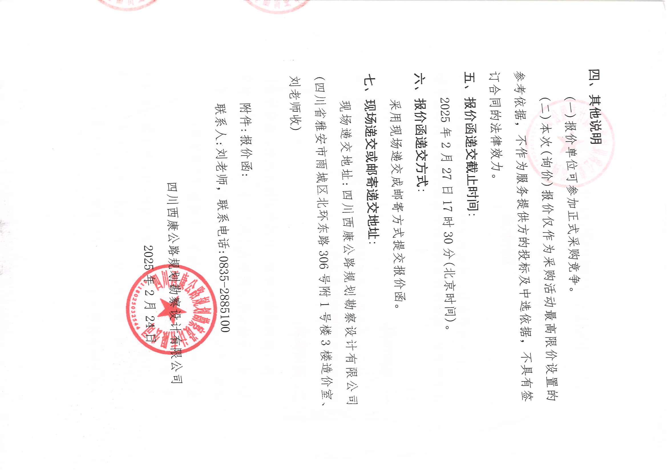 四川西康公路規(guī)劃勘察設(shè)計(jì)有限公司資質(zhì)維護(hù)服務(wù)采購(gòu)限價(jià)詢價(jià)函